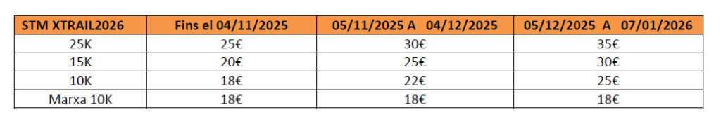 - Els tercers tindran com a premi: Trofeu + Regals de patrocinadors + Inscripció gratuïta a 1 prova XtrailMarathon 2026.